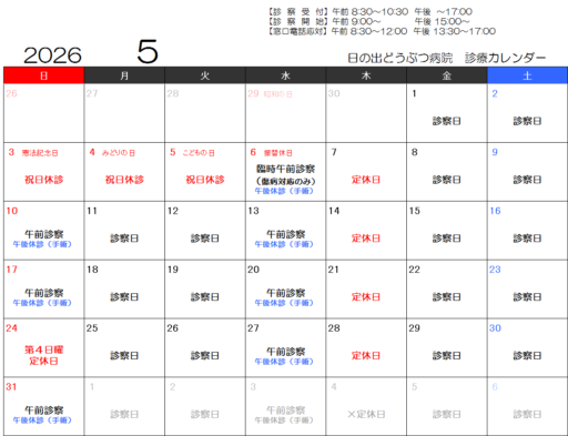 【5月GW中の診察について】