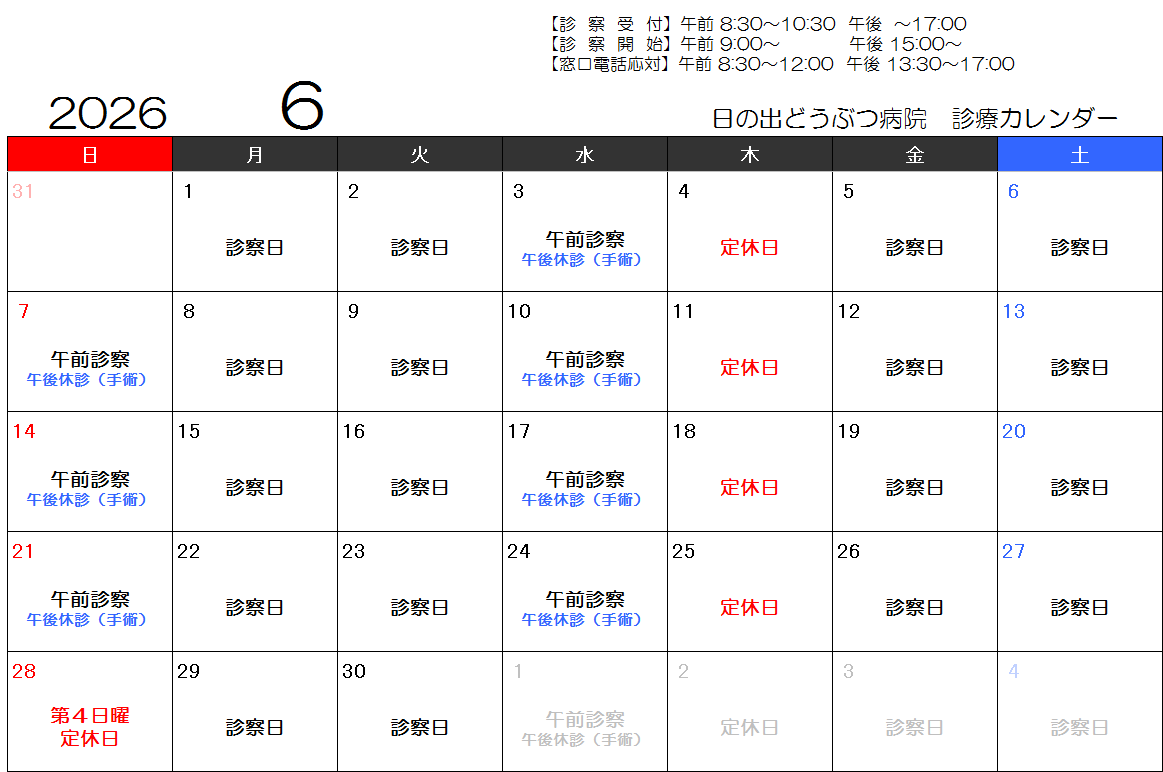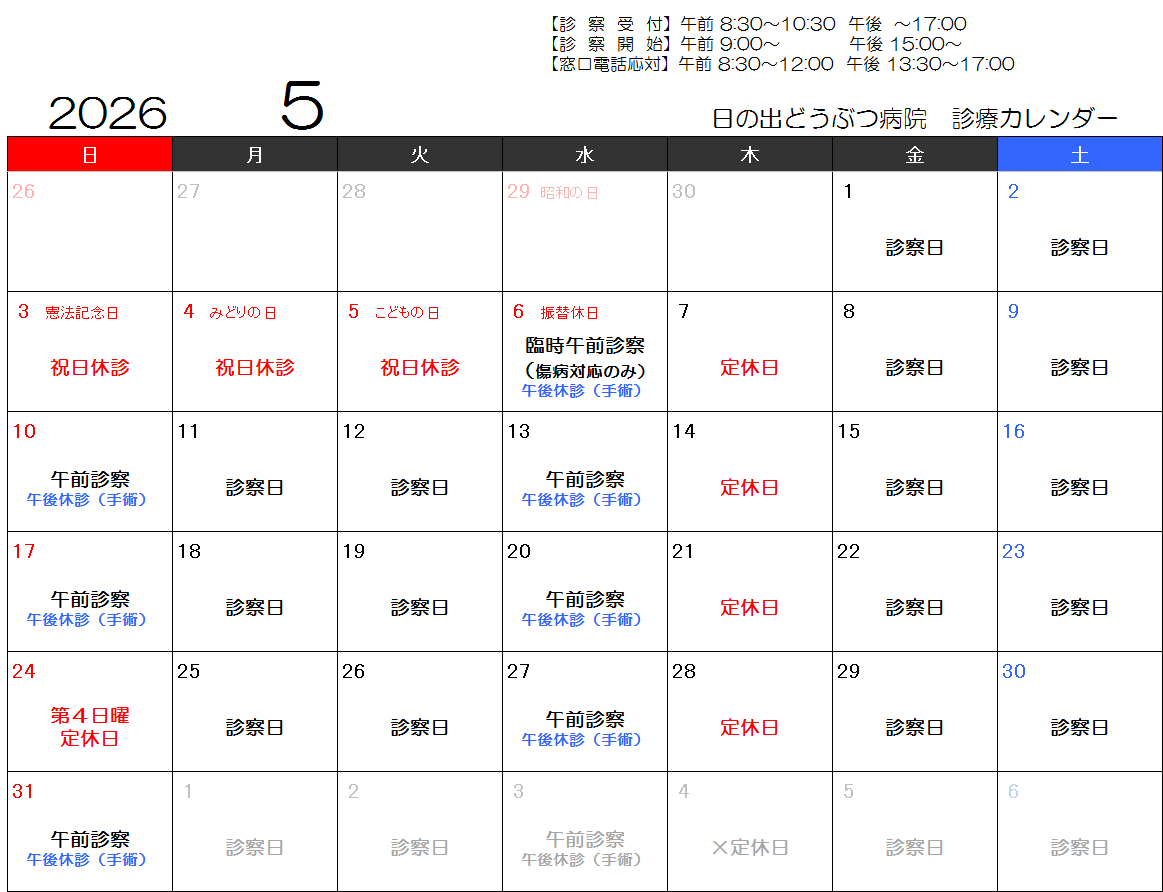 5月6日(水)午前診察いたします。当日は『怪我や体調不良病気の子のみを対象』とさせていただきたく、どうかご理解ご協力くださいますようお願い申し上げます。